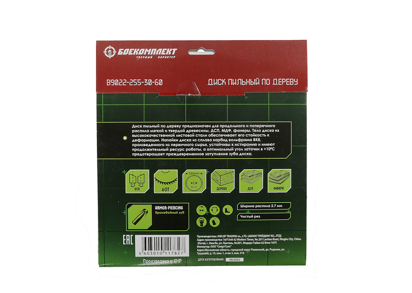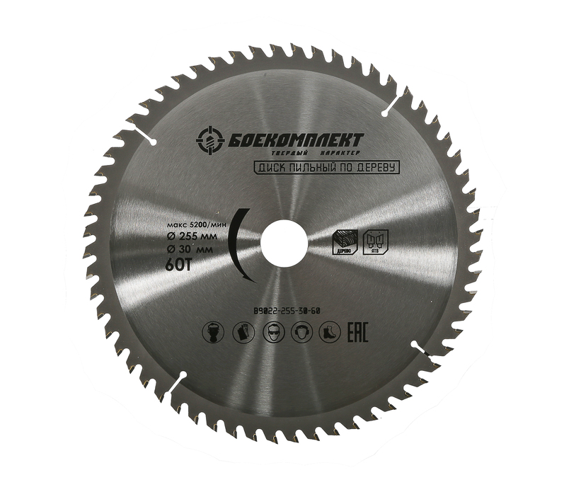 Пильный диск по дереву 255x30мм, 60 зубьев, БОЕКОМПЛЕКТ